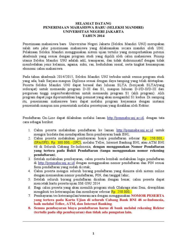 Pendaftaran Penmaba Unj / Pendaftaran Jalur Mandiri Unj 2021 2022 Penmaba Unj Ac Id Pendaftaran Online 2021 2022 - Jalur ini mirip seperti ujian tertulis berbasis komputer (utbk), yaitu tingginya nilaimu akan menentukan keberhasilanmu diterima di unj.